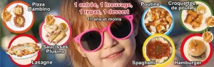 Au Restaurant Plus nous offrons un menu enfants 11 ans et moins et de plus vos petits mangent gratuitement du dimanche 16h00 au jeudi soir